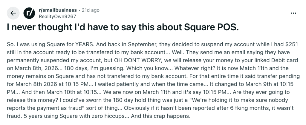 Here are other common negative reviews about Square: